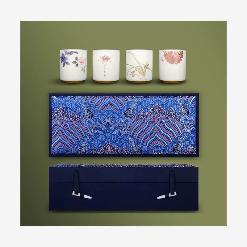 Crafted from premium suet jade white porcelain, this exquisite Four Seasons teacup exemplifies traditional ceramic artistry. The master cup's translucent white finish and refined silhouette showcase exceptional craftsmanship, enhancing the tea-tasting experience through perfect temperature retention and subtle flavor preservation. An essential vessel for connoisseurs seeking to appreciate the nuanced character of fine teas.